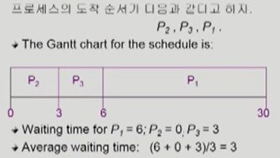 처음으로 온 CPU가 길게 가져가 버리면 짧게 쓰는 CPU라도 늦게 온다면 오래 기다리기만 해야 합니다.